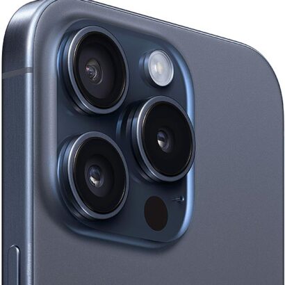 The iPhone 15 Pro Max features a 6.7-inch Super Retina XDR display, an A17 Pro chip, and a pro camera system with a 48MP main camera, 12MP ultrawide, and 12MP 5x telephoto lens. It also boasts up to 1TB of storage, 8GB of RAM, and a 4422 mAh battery. The body is made with a titanium frame and Ceramic Shield front cover.